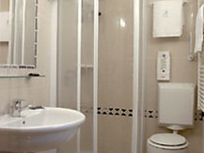 Ванные комнаты отделаны светлым кафелем, с душевой кабиной и феном.