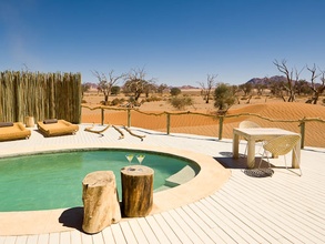 Лодж Little Kulala расположен в пустыне Намиб, рядом с зоной красных дюн Соссусвлей. Элегантные деревянные коттеджи (кулала) с тростниковыми крышами и просторными, выкрашенными в белый цвет помещениями, удачно контрастируют с окружающим пустынным пейзажем. Коттеджи построены на платформах и располагают тенистыми верандами с зонами отдыха, бассейнами и открытыми помещениями на крышах, где можно провести ночь под чарующим звездным небом пустыни.
